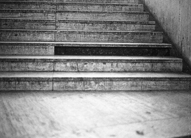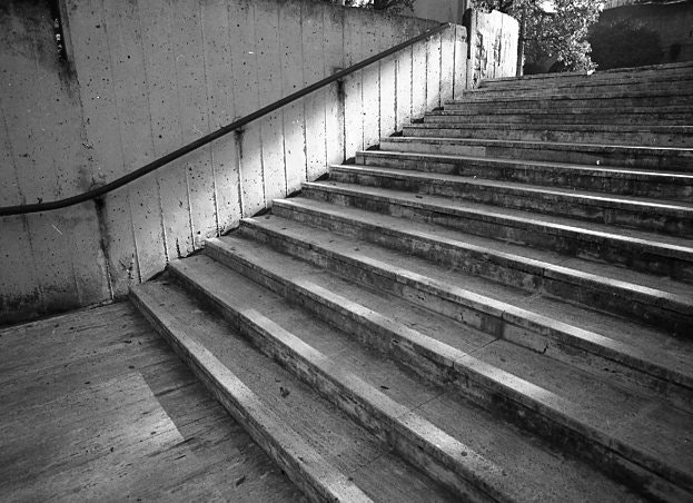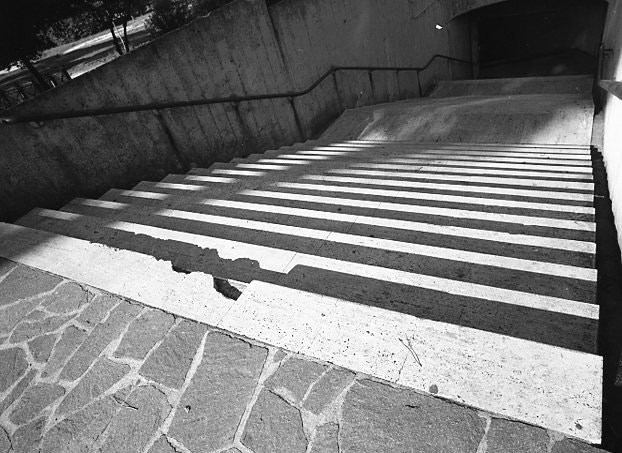 Steps is a series which considers the dilapidated stairs descending to an underground carpark housing supercars in Rome's prestigious Villa Borghese. These images are scanned120mm black and white negatives shot on Ilford DELTA 100.