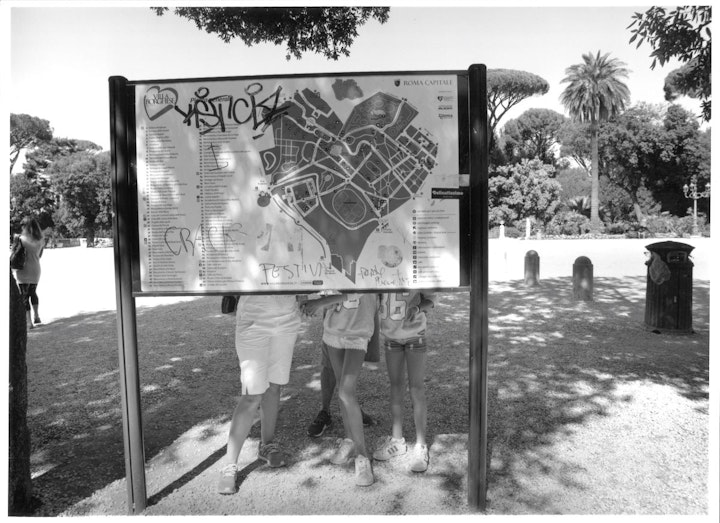 This project considers cartography in Rome’s Villa Borghese, the city’s most central park. To add to the orienteering challenge, the official Borghese maps unfortunately omit the ‘You are here’ symbol to show the user where they actually are.